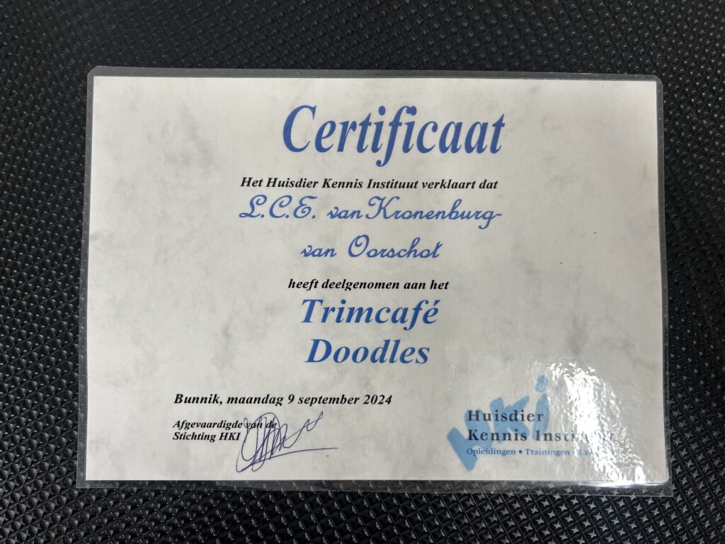 Ik ben altijd bezig met het verdiepen en uitbreiden van mijn kennis. Dit doe ik door regelmatig vakdagen, workshops en cursussen te volgen. Daarnaast neem ik deel aan trimwedstrijden, waarin ik mezelf blijf uitdagen en ontwikkelen. Ook ben ik lid van de ABHB, de Algemene Belangenvereniging voor het HuisdierentoiletteerBedrijf.